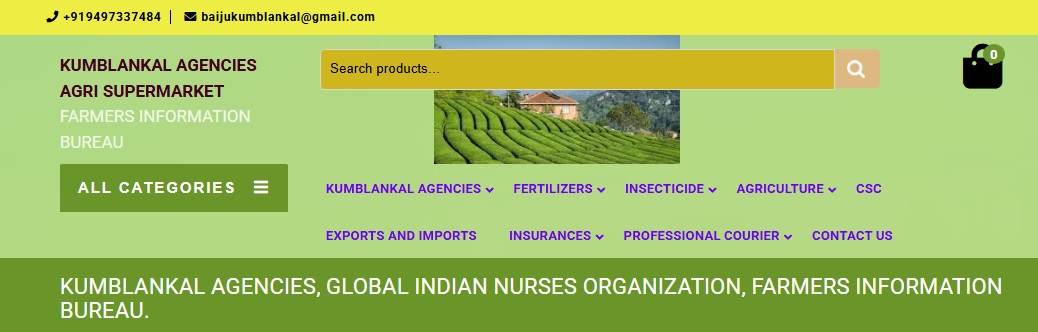 KUMBLANKAL AGENCIES AGRI SUPERMARKET – AND K-MART  > CONTACT US >  CONTACT US: KUMBLANKAL AGENCIES, GLOBAL INDIAN NURSES ORGANIZATION, FARMERS INFORMATION BUREAU.