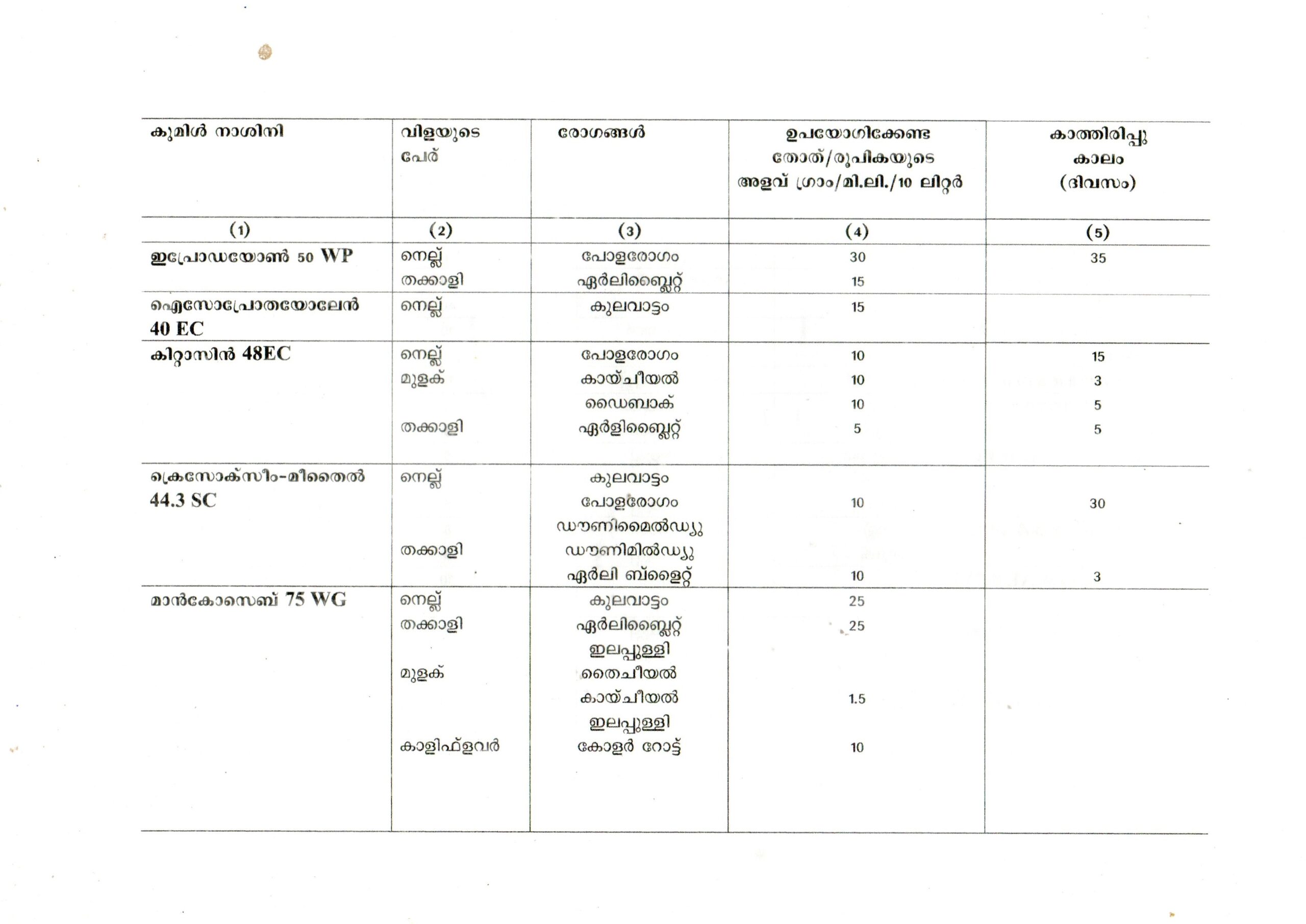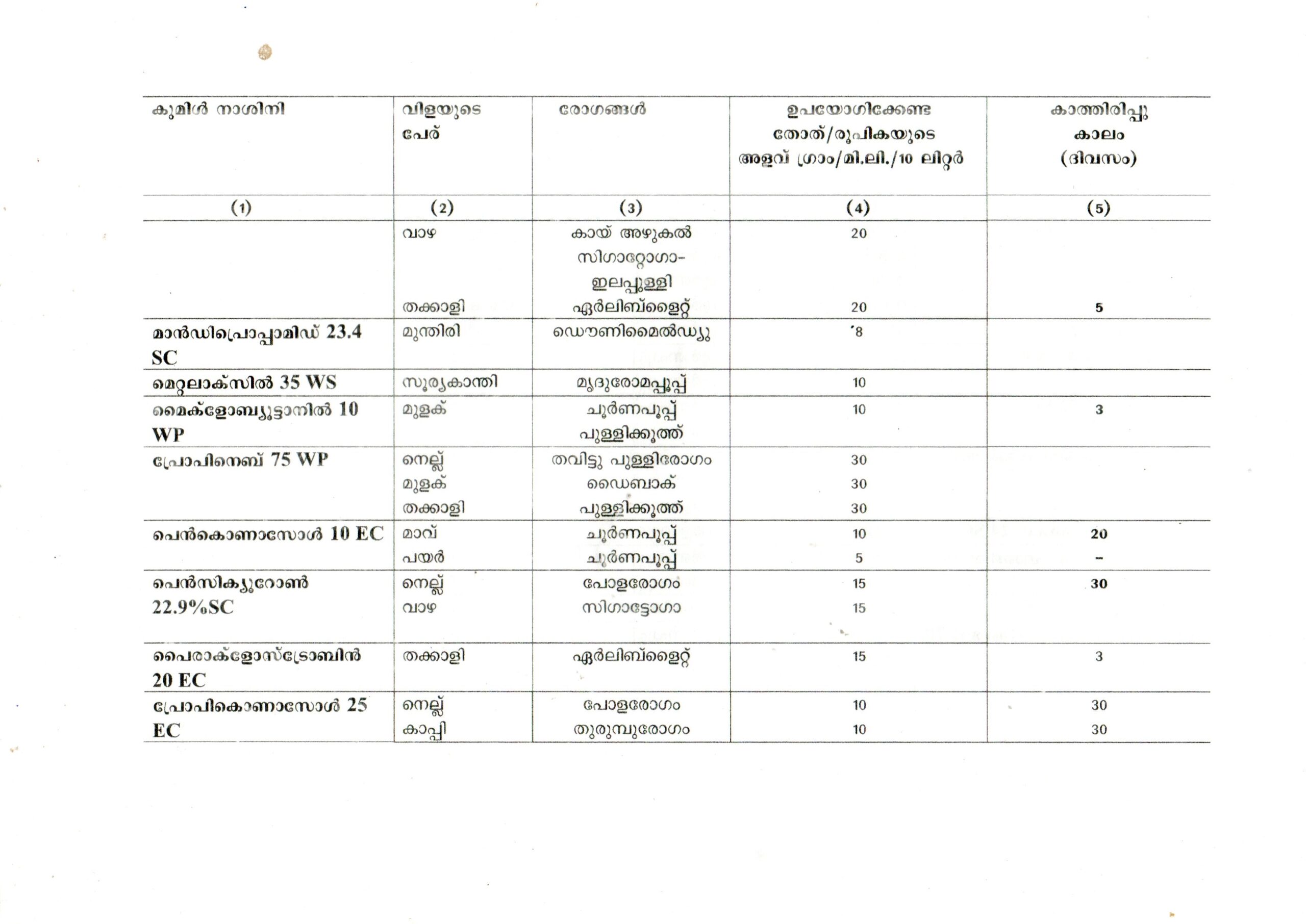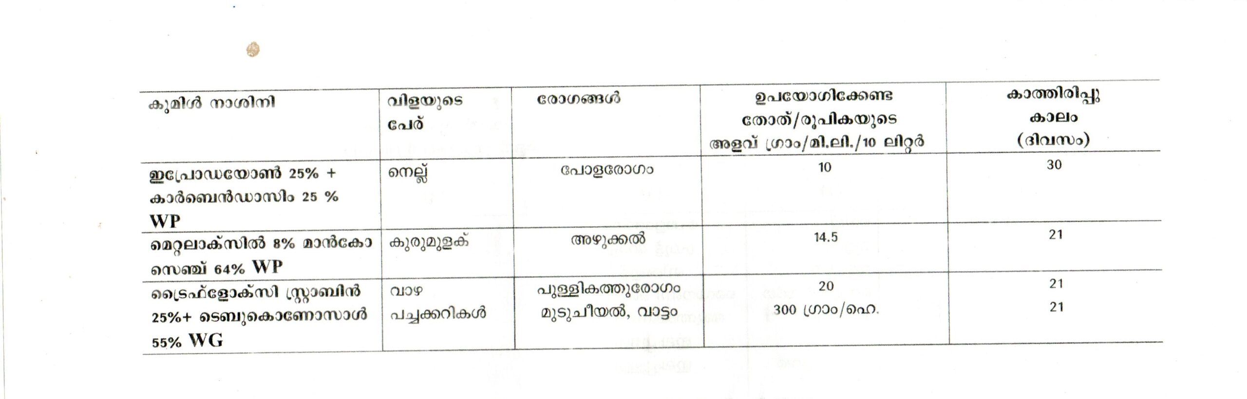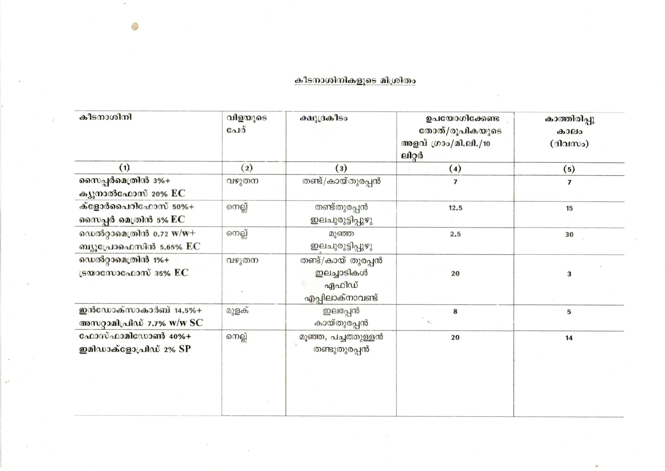 KUMBLANKAL AGENCIES AGRI SUPERMARKET – AND K-MART  > INSECTICIDES RECOMENTATIONS FOR KERALA >  കീടനാശിനി മിശ്രിതം (കേരളാ)