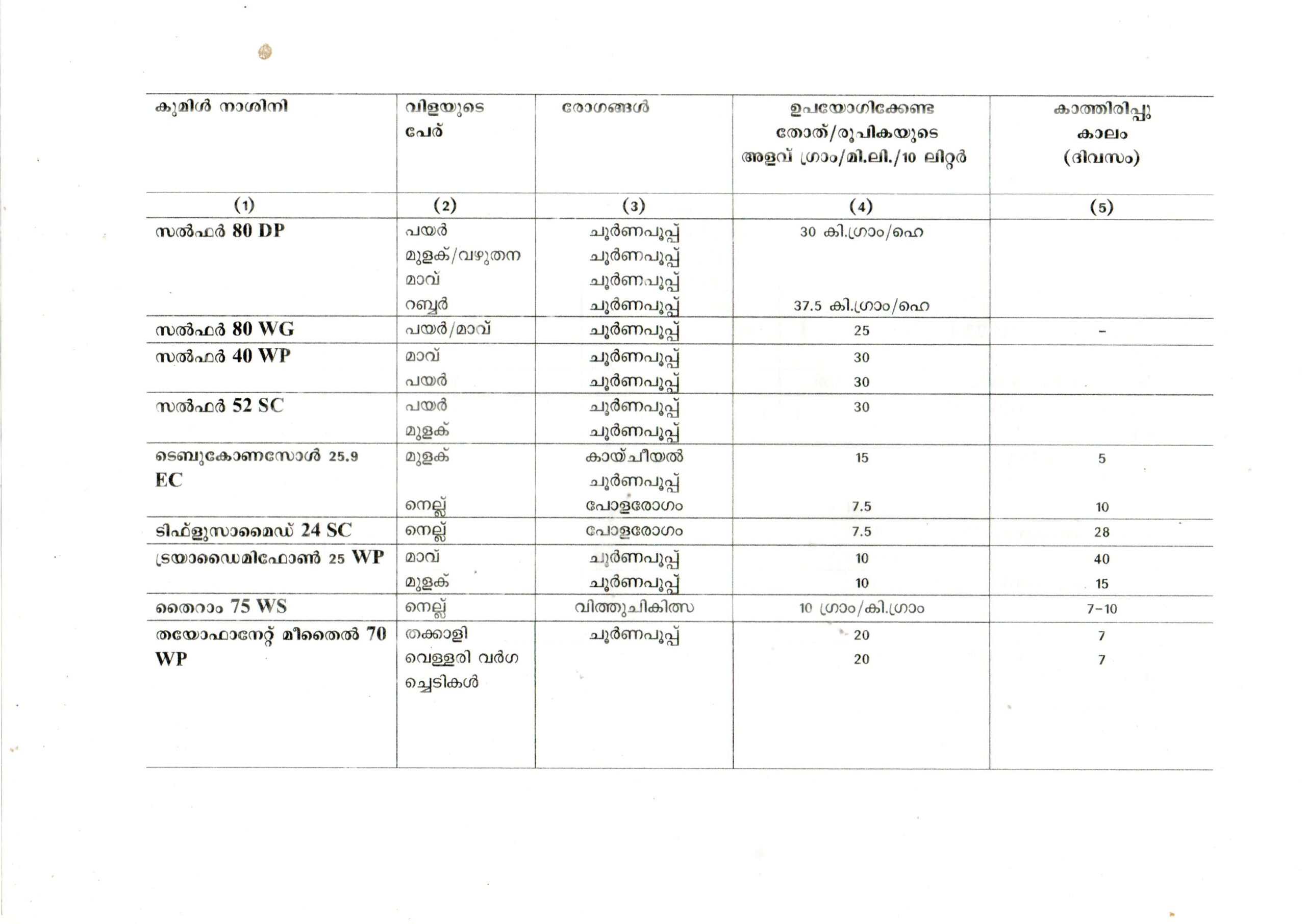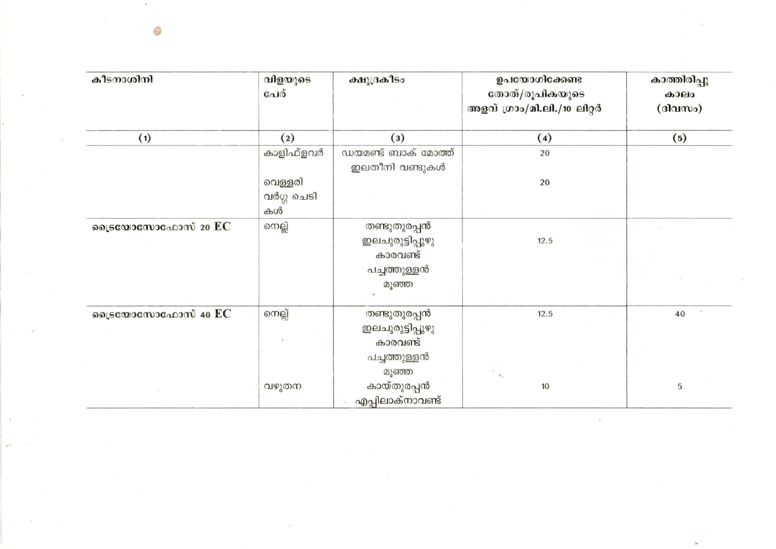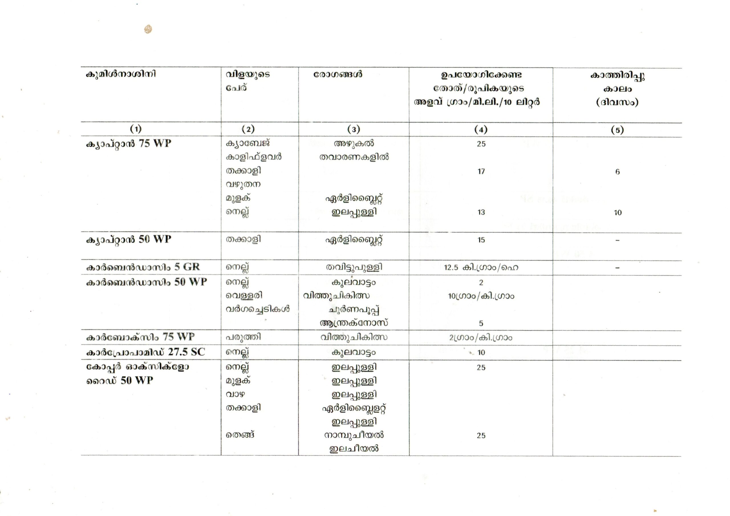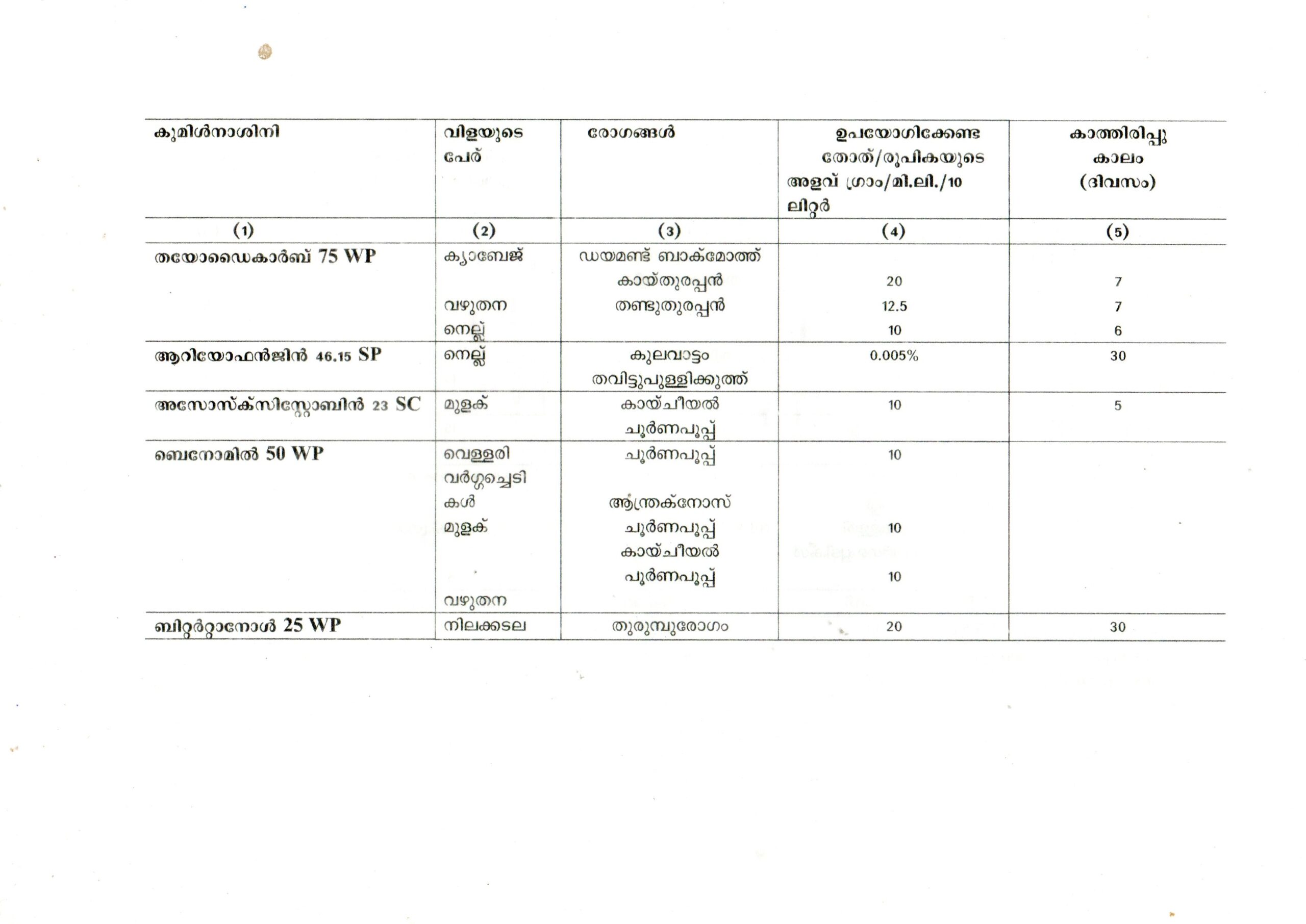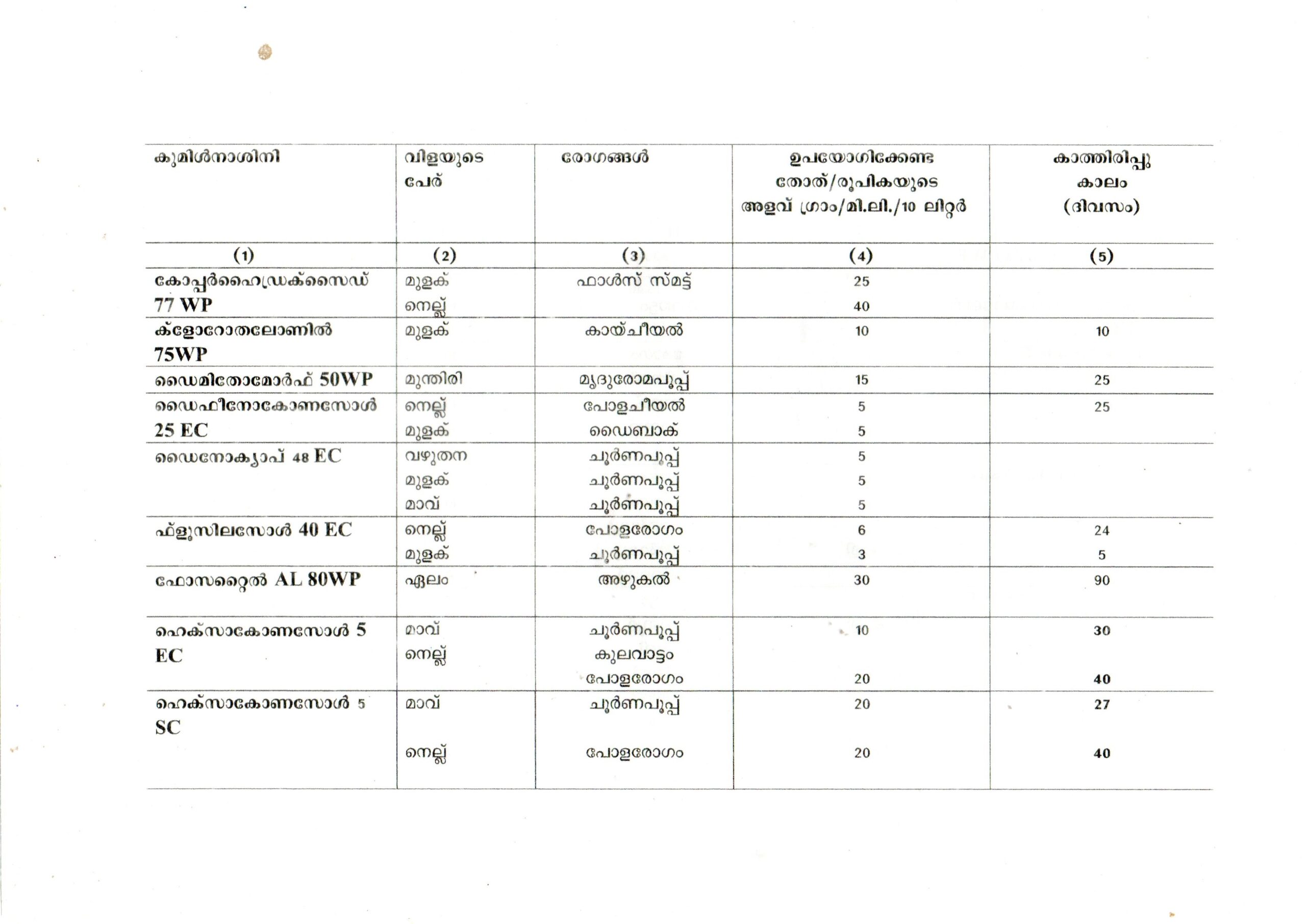 KUMBLANKAL AGENCIES AGRI SUPERMARKET – AND K-MART  > INSECTICIDES RECOMENTATIONS FOR KERALA >  കീടനാശിനി മിശ്രിതം (കേരളാ)
